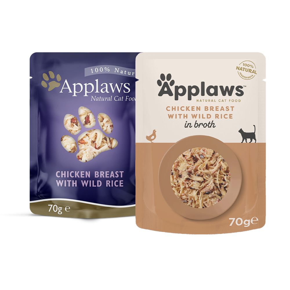 APPLAWS, Piept Pui și Orez Sălbatic, plic hrană umedă pisici, (în supă), 70g