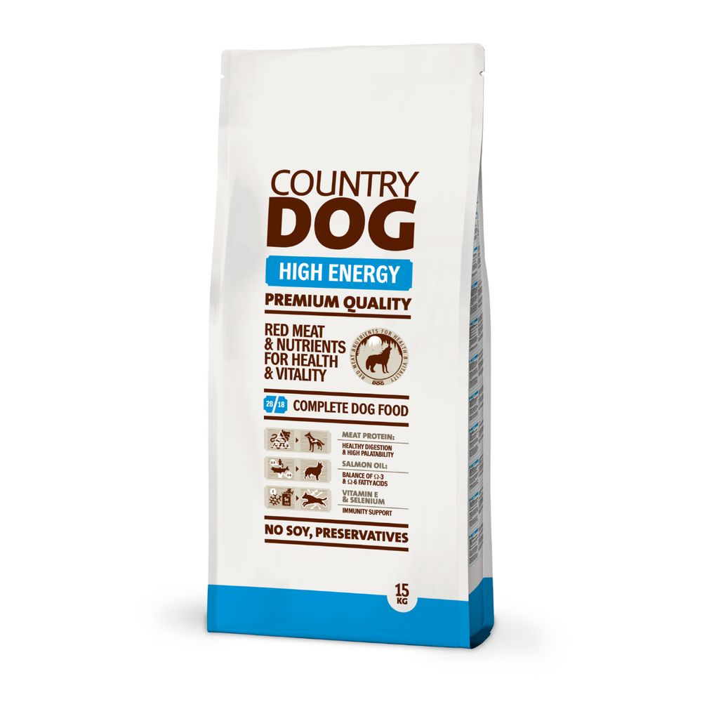 | Descriere scurta | Country Dog High Energy este o hrană completă 100% echilibrată, potrivită pentru câinii adulți cu activitate mai mare. Carnea nutritivă de înaltă calitate ca prim ingredient garantează o digestibilitate excelentă a hranei și dă putere activităților zilnice ale animalului de companie. Beneficii: