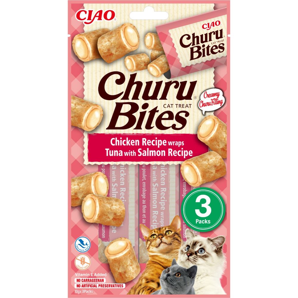 INABA Churu Bites, Pui, Ton și Somon, punguță, recompense fără cereale pisici, semimoist