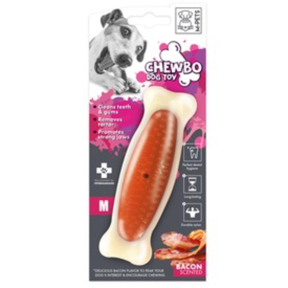 M-PETS Chewbo Bone, jucărie de ros, aromă Bacon, câini, dentiție, cauciuc