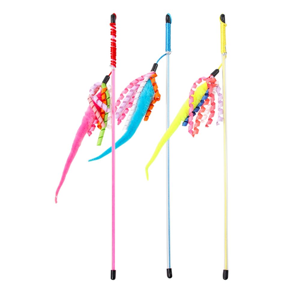Trixie, undiță cu panglică și pene, jucărie, pisici, multicolor, 50cm