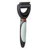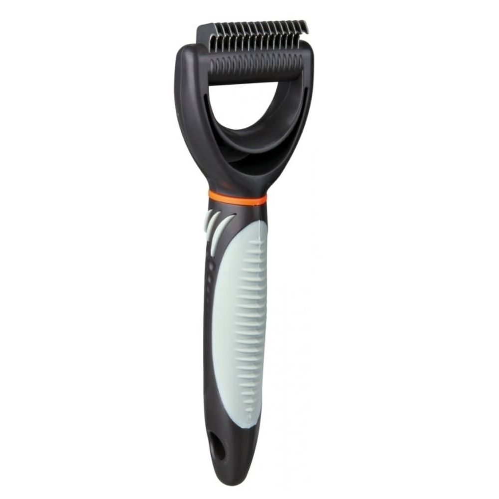 Dintii cu lungime de 1 cm netezesc blana la suprafata si taie cu blandete portiunile de par incalcit. Manerul de plastic este tapetat cu un strat antiderapant de cauciuc.