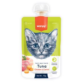 WANPY Creamy Treat, Ton și Cod, punguță recompense pisici, (piure)