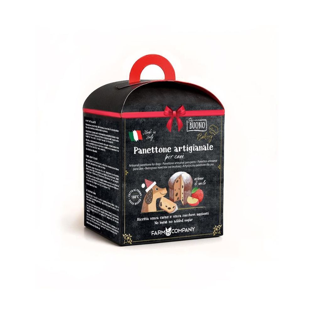 | Descriere scurta | Răsfață-ți blănosul cu un strop de magie de Crăciun cu Panettone artizanal creat special pentru câini. Este făcut cu grijă și multă iubire, folosind doar ingrediente naturale și sănătoase. Fiecare felie este moale, pufoasă și îmbietoare, exact ca o îmbrățișare caldă de sărbători. Aroma delicată de mere îl face irezistibil chiar și pentru cei mai mofturoși căței, transformând fiecare mușcătură într-un mic moment de fericire. Un panettone paw-autentic facut in Italia intr-o ediție specială este mai mult decât o gustare — este un cadou festiv care aduce spiritul Crăciunului direct în bolul prietenului tău patruped. Fără zahăr, fără conservanți și fără aditivi artificiali, desertul este sigur, delicios și perfect pentru a fi savurat ca o recompensa. O surpriză naturală care spune „te iubesc” în cel mai pufos mod posibil! Beneficii: