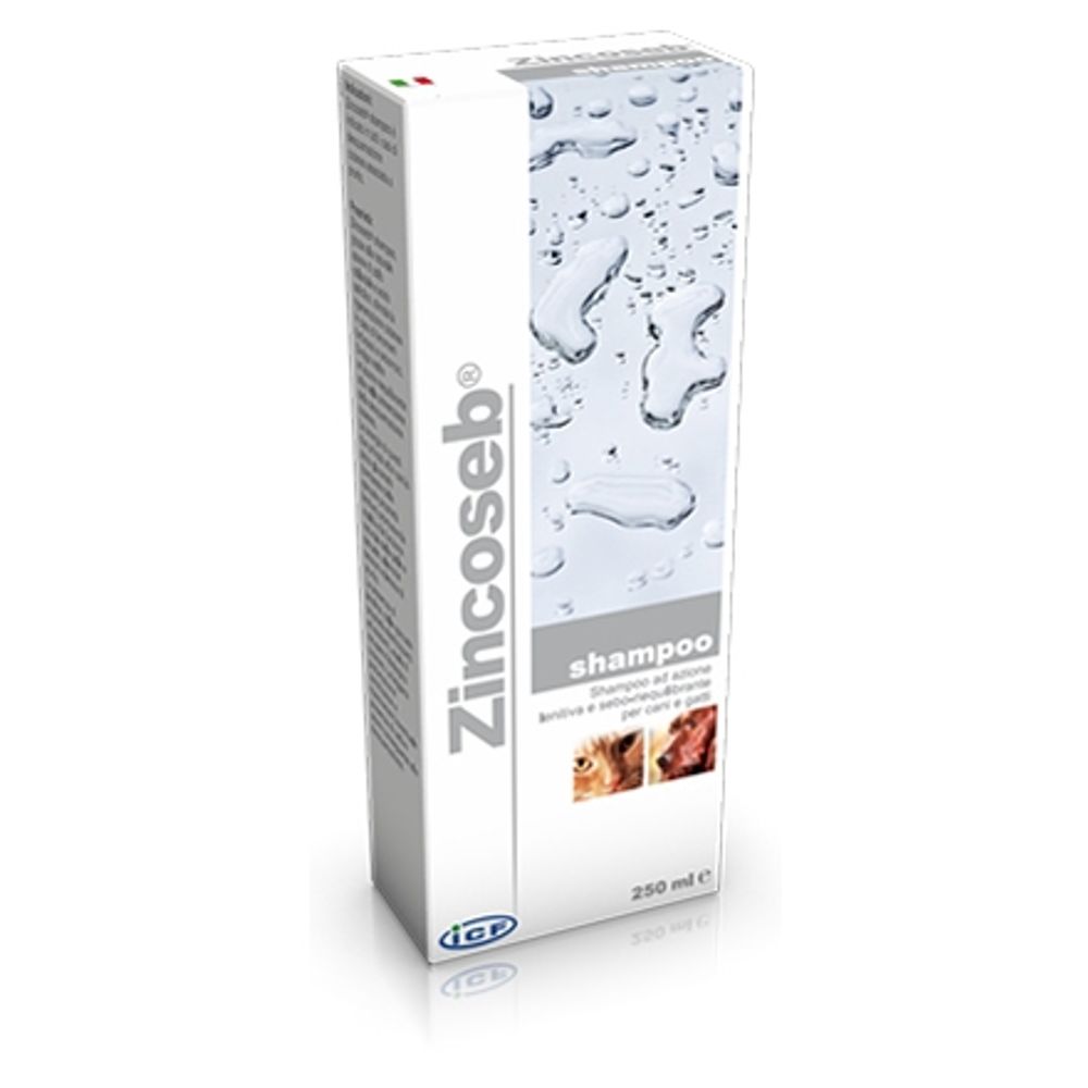 | Descriere scurta | Sampon Zincoseb, 250 ml sampon cu reechilibrare a sebumului si actiune lenitiva pentru caini si pisici.Utilizarea samponului Zincoseb este recomandata in caz de descuamare si mancarime a pielii. Samponul Zincoseb, gratie actiunii naturale a sulfului coloidal si a acidului salicilic, stimuleaza actiunea regenerativa cutanata in caz de seboree si matreata. De asemenea, joaca o actiune de reechilibrare utila pentru prevenirea descuamarii pielii. Sinergia dintre aceste doua substante active si gluconatul de zinc (substanta cu proprietati lenitive puternice) promoveaza vitalitatea si functia pielii si blanii naturale, amelioreaza tensiunea si calmeaza mancarimea. Beneficii: