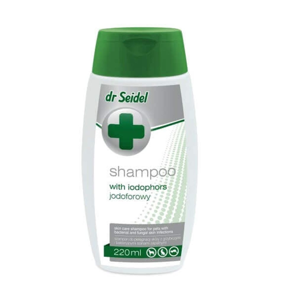 | Descriere scurta | Sampon Pentru Caini Dr. Seidel Cu Iodofor, este un sampon recomandat pentru cainii care au afectiuni inflamatorii ale pielii. Samponul contine ingrediente special alese pentru tratarea si calmarea pielii inflamate din cauza muscaturilor de purici, a dermatitei alergice sau seboreice. Samponul calmeaza pielea si grabeste vindecarea leziunilor bacteriene si fungice, reducand in acelasi timp cantitatea de microorganisme nedorite de pe pielea si blana cainelui. In plus, preparatul previne infectiile cutanate, calmeaza iritatiile, si imbunatateste aspectul pielii si al blanii. Mod de utilizare: Udati blana cu apa calduta si aplicati a cantitate redusa de sampon. Masati pentru aproximativ 5 min. Protejati ochii si urechile animalului pe timpul imbaierii. Clatiti cu atentie. Repetati daca este cazul. |