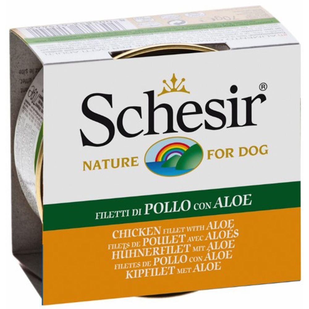 | Descriere scurta | Conserva Schesir Adult cu pui si aloe in aspic contine numai ingrediente naturale, carnea folosita fiind curatata de oase piele intestine si parti cu sange, fara conservanti si coloranti. Puii sunt crescuti in Thailanda urmand instructiunile igienico-sanitare prevazute de regulamentele europene. Puiul contine proteine cu o valoare biologica ridicata, care asigura toti aminoacizii de care are nevoie cainele dumneavostra. Aloe este adaugat pentru o aroma mai intensa si un continut ridicat de fibre. Legumele provin din culturi locale pentru a reduce impactul transportului asupra procesului de productie Beneficii