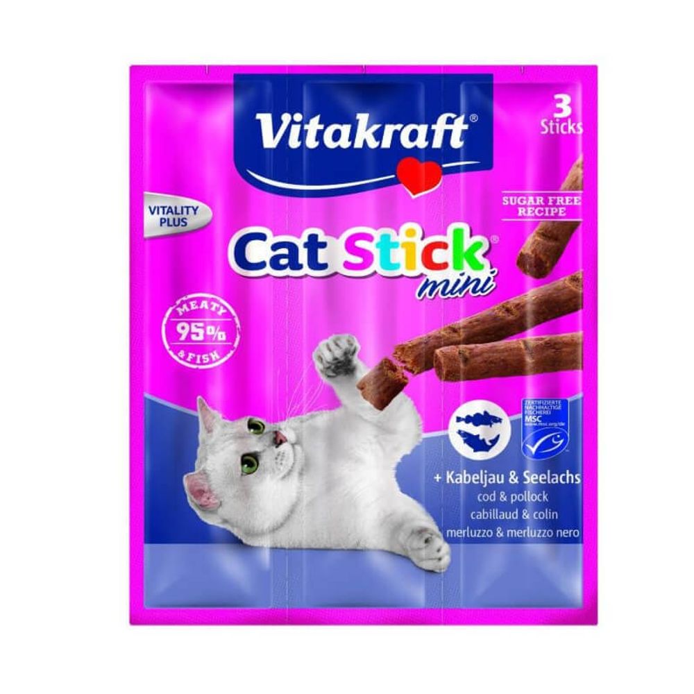 | Descriere scurta | Vitakraft Cat Sticks Cod Si Merluciu, 18 g sunt o delicatesa absoluta! Batoanele delicioase contin carne in plus, au un miros seducator si gust pur si simplu irezistibilDeliciosul merluciu si codul, preferatele chiar si a celor mai dificile pisici: un gust inimitabil pentru o rata de acceptare de pana la 98%. Un continut de peste de 80%. Un miros neutru in mod deliberat, deoarece simtul mirosului pisicii este delicat. Reteta fara adaos de zaharuri, fara coloranti si fara arome artificiale.