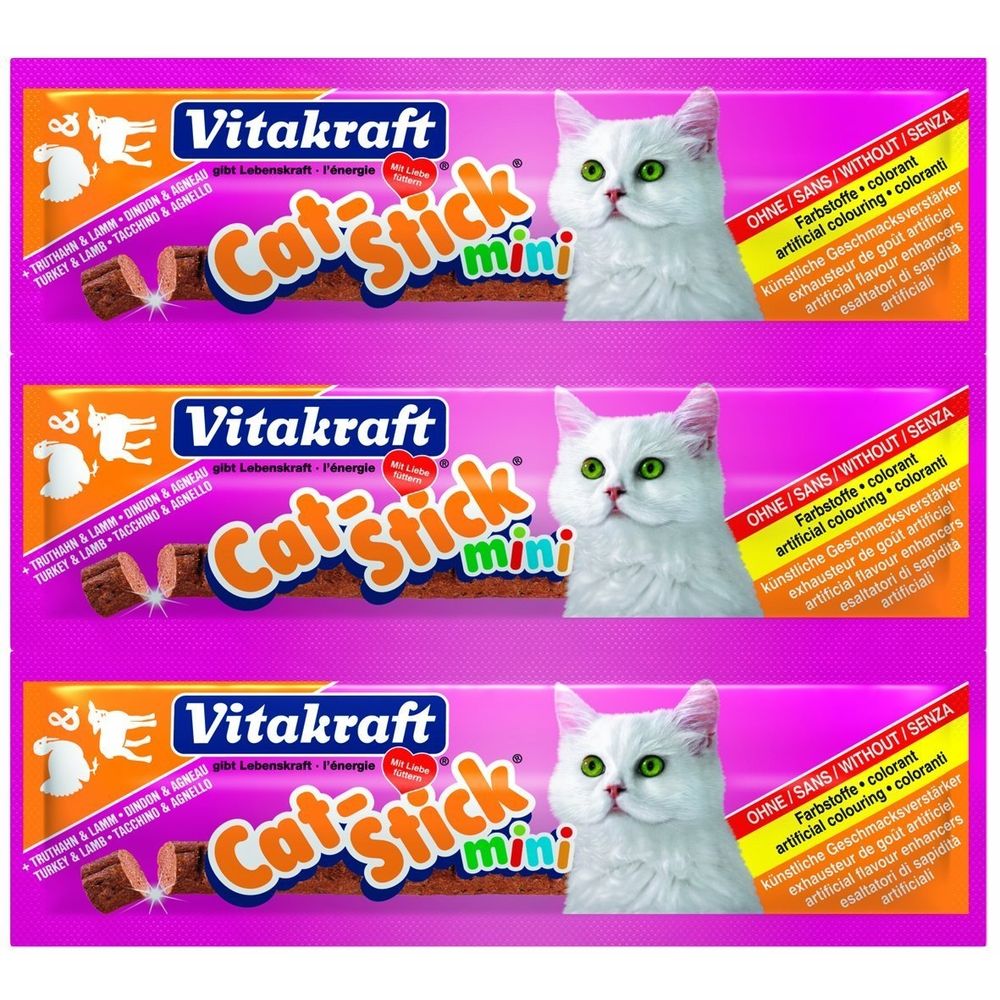 | Descriere scurta | Vitakraft Cat Stick Mini Curcan si Miel este o gustare delicioasa pentru pisici. Cu un continut de peste 90% carne de curcan si miel, fara adaos de zahar sau potentatori de gust, aceasta gustare va fi apreciata de fiecare data de catre pisica dumneavostra. |
